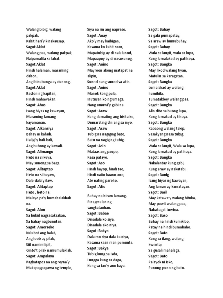 Nagtanim ako ng dayap Sa gitna ng dagat Marami ang nagsihanap Iisa lamang ang nagkapalad. Bugtong bugtong nagbibigay na sinasakal pa sagot. Mga Mas Bagong Post Home.