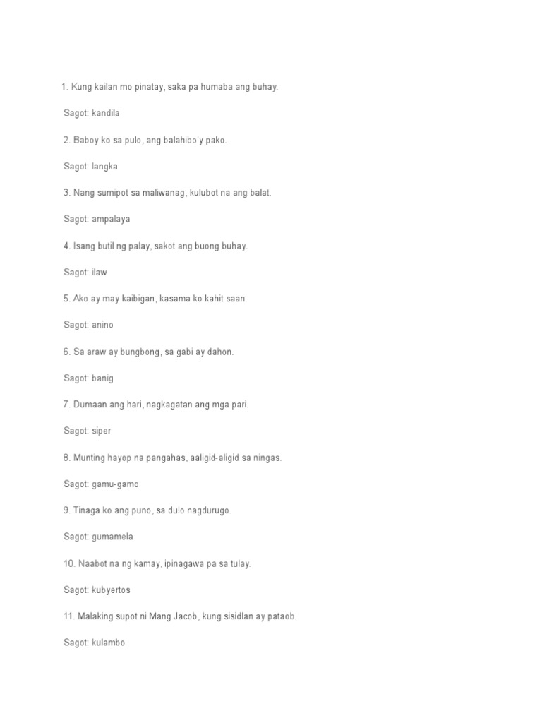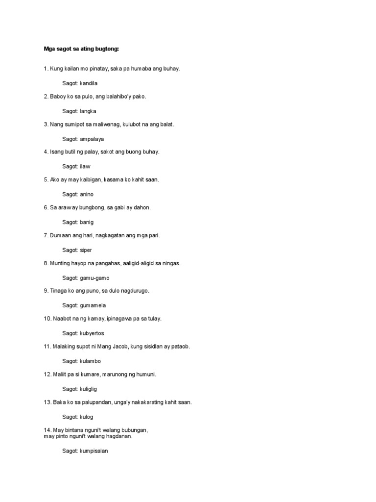 Bugtong Bugtong 20 Halimbawa Ng Bugtong O Palaisipan